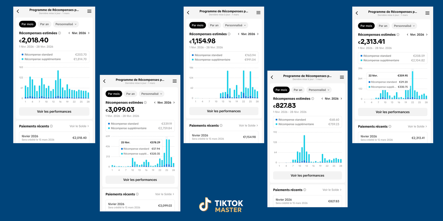 1 900 € générés en 20 jours avec deux comptes TikTok.